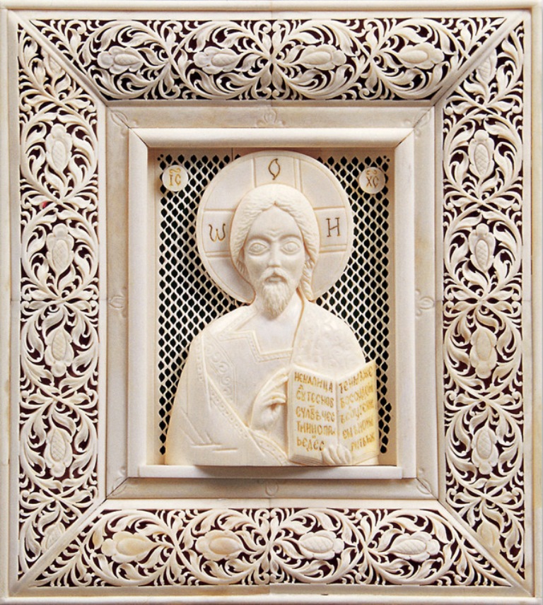 Дерево, кость слоновая, кость животная, ткань, металл/ резьба рельефная, резьба сквозная, гравировка, тонирование, монтирование 17,7х16х2,6 см.