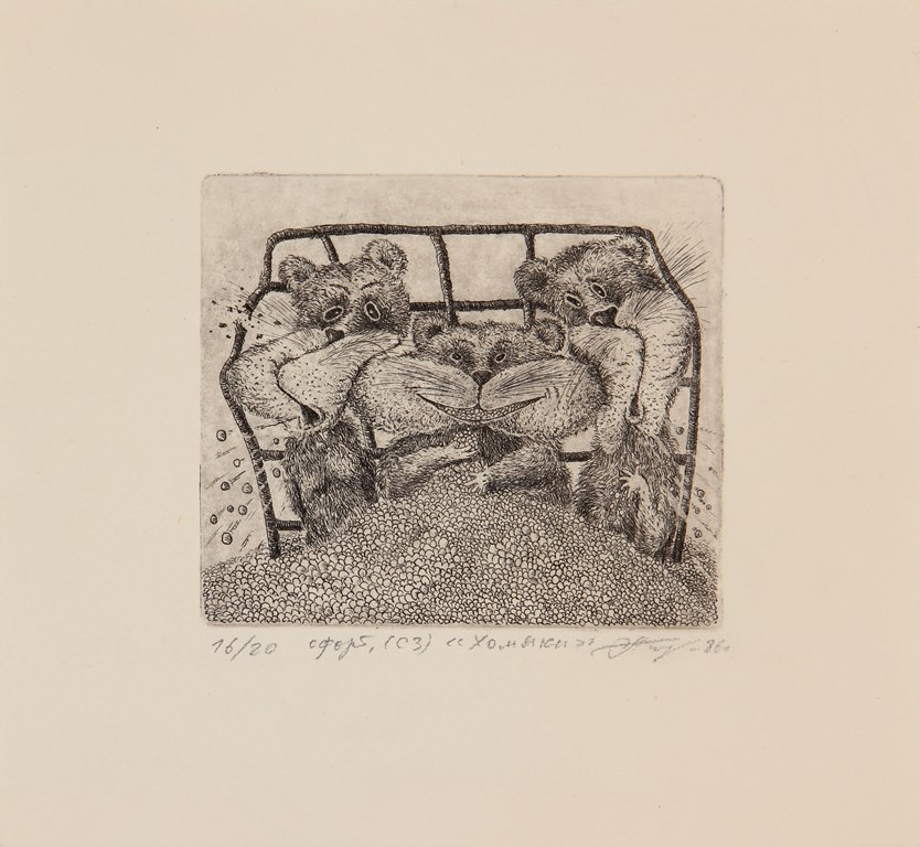 Бумага/ сухая игла, офорт. Лист: 197х213 мм; изображение: 105х120 мм.