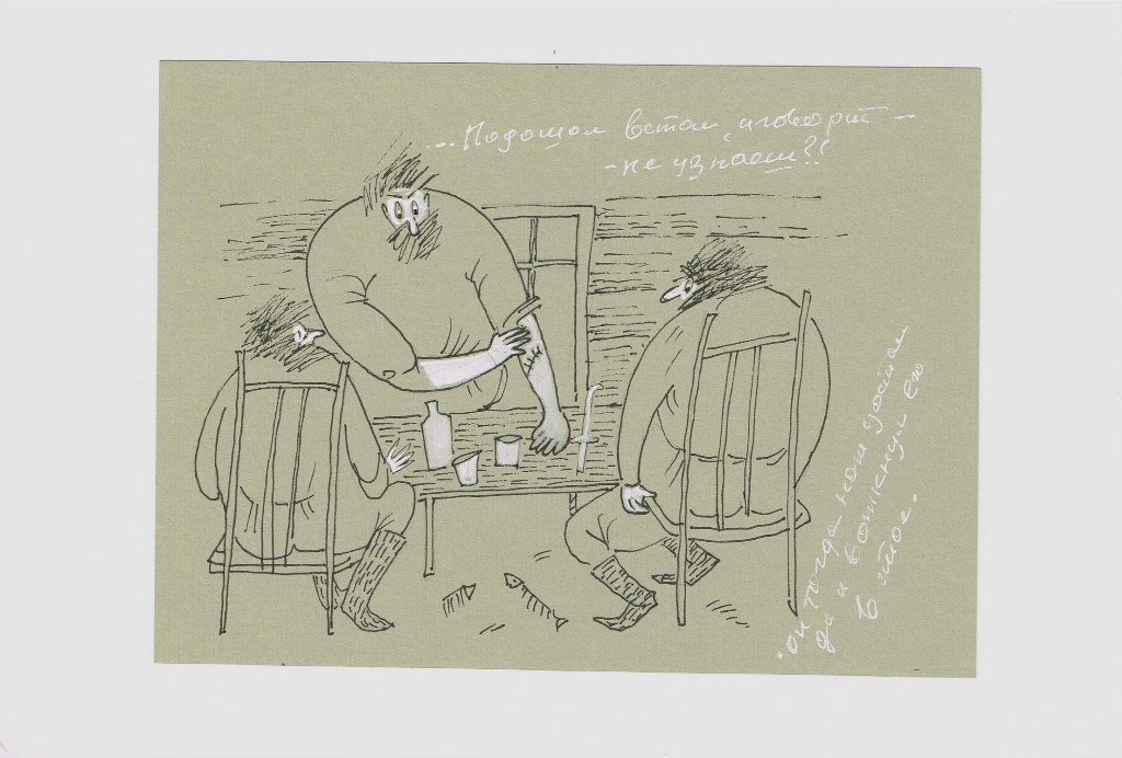 «Подошел, встал и говорит: «Не узнаешь?!». Из серии иллюстраций к литературному произведению Г.С Райшева «Сибирские бывальщины»