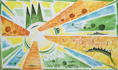 Пейзаж с домом. Серия «Космос. Летающие камни»