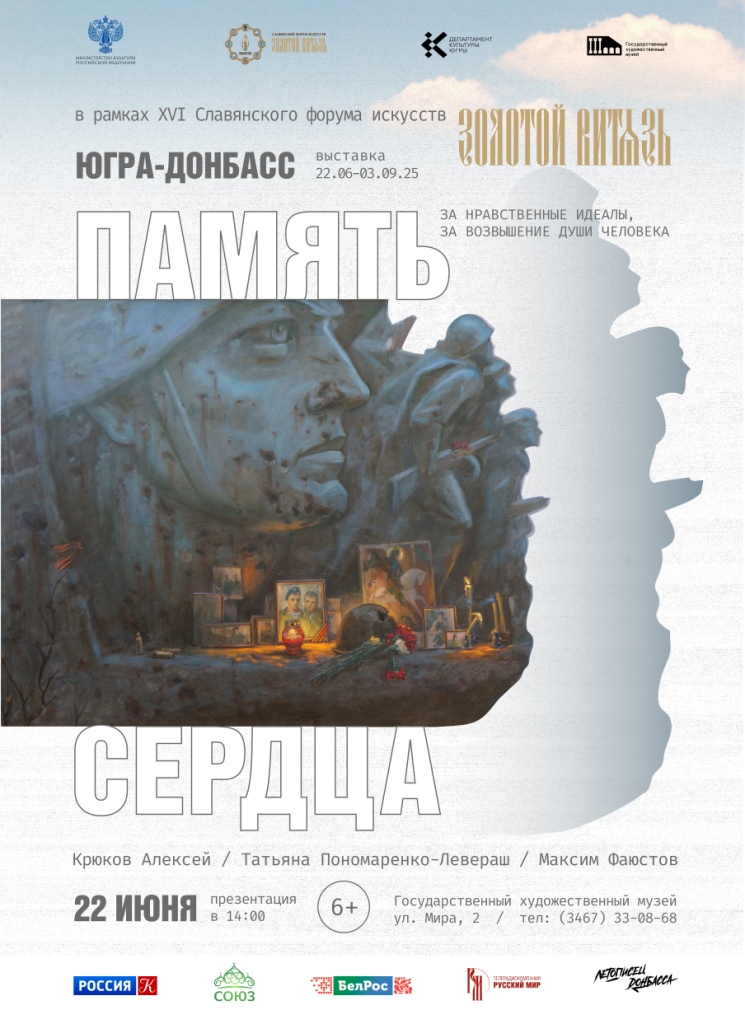 22 июня 2025 года – в День памяти и скорби в Государственном художественном музее Югры откроется патриотическая выставка «Югра-Донбасс. Память сердца». Она организована в рамках Славянского Форума изобразительных искусств «Золотой Витязь». Проект посвящен героизму жителей Донбасса и участников СВО, а также поддержке Югры в восстановлении ДНР. Выставка проводится при поддержке правительства Тюменской области и отражает вклад Югры в помощь Донбассу. Это не только дань памяти, но и связь поколений: экспозиция открывается в год 80-летия Победы в Великой Отечественной войне.