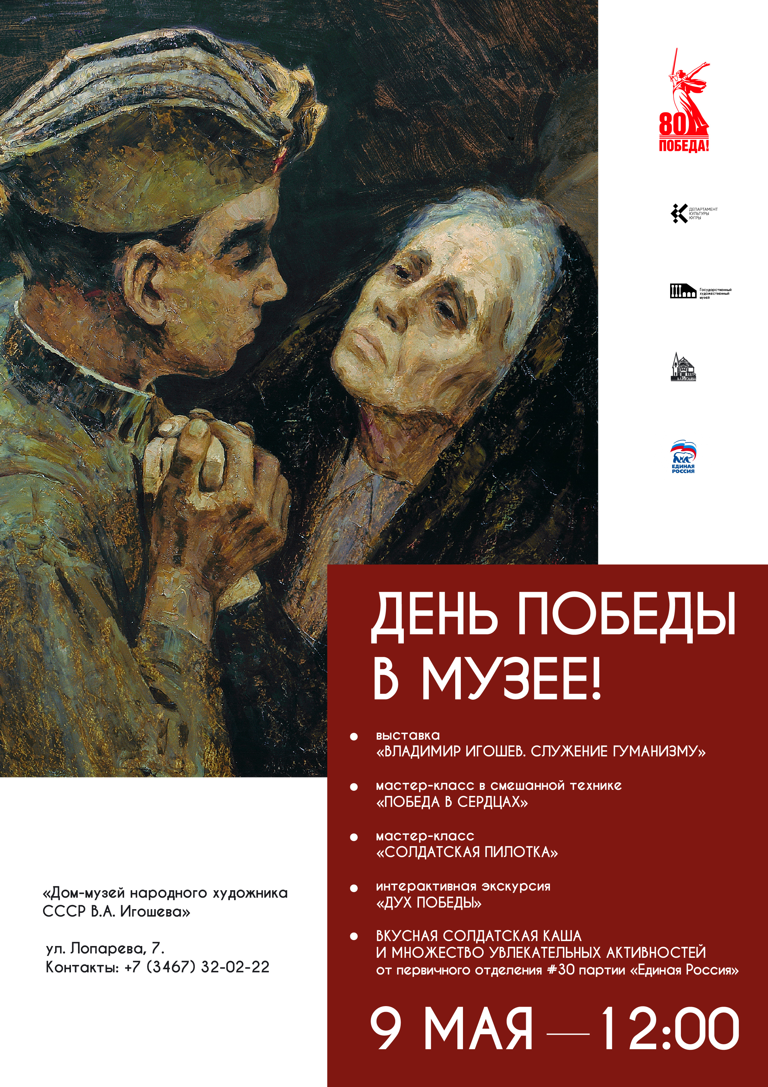 Дорогие друзья! Скоро мы отметим 9 мая — день, который объединяет сердца и напоминает о подвиге наших героев! В этом году Государственный художественный музей вместе с первичным отделением #30 партии «Единая Россия» приглашает вас на незабываемое мероприятие на площадке нашего филиала – Дома-музея народного художника СССР В.А. Игошева.