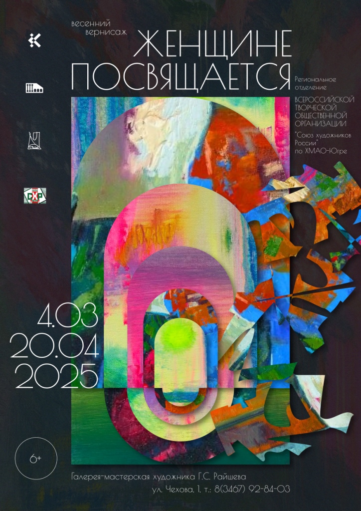 4 марта в 16:00, в преддверии Международного женского дня, в Галерее-мастерской художника Г.С. Райшева, филиале Государственного художественного музея открывается выставка «Женщине посвящается». Весенний вернисаж представит творческие работы профессиональных художников Югры, в том числе членов региональной общественной организации «Союз художников России».