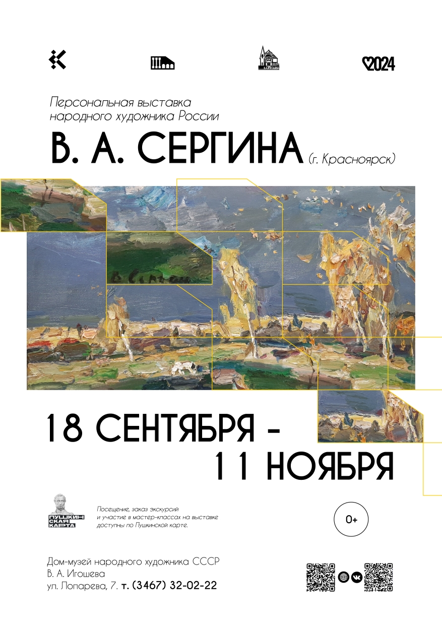 18 сентября 2024 года в филиале Государственного художественного музея «Дом-музей народного художника СССР В. А. Игошева» состоится открытие персональной выставки народного художника России Валерьяна Алексеевича Сергина (г. Красноярск) из цикла «Музей представляет».