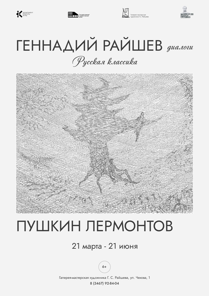 21 марта в 17.00 во Всемирный день поэзии, в филиале Государственного художественного музея - Галерее-мастерской Г. С. Райшева состоится презентация выставки «Русская классика в иллюстрациях Геннадия Райшева». Выставка подготовлена к 90-летию Заслуженного художника России. Работы выполнены по мотивам произведений классиков русской литературы.