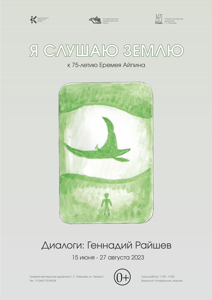 15 июня в 16.00 в Галерее-мастерской Г.С. Райшева состоится презентация выставки «Геннадий Райшев. Я слушаю Землю» проекта «Диалоги» по мотивам произведений Еремея Айпина. Выставка подготовлена к 75-летию известного хантыйского российского писателя.