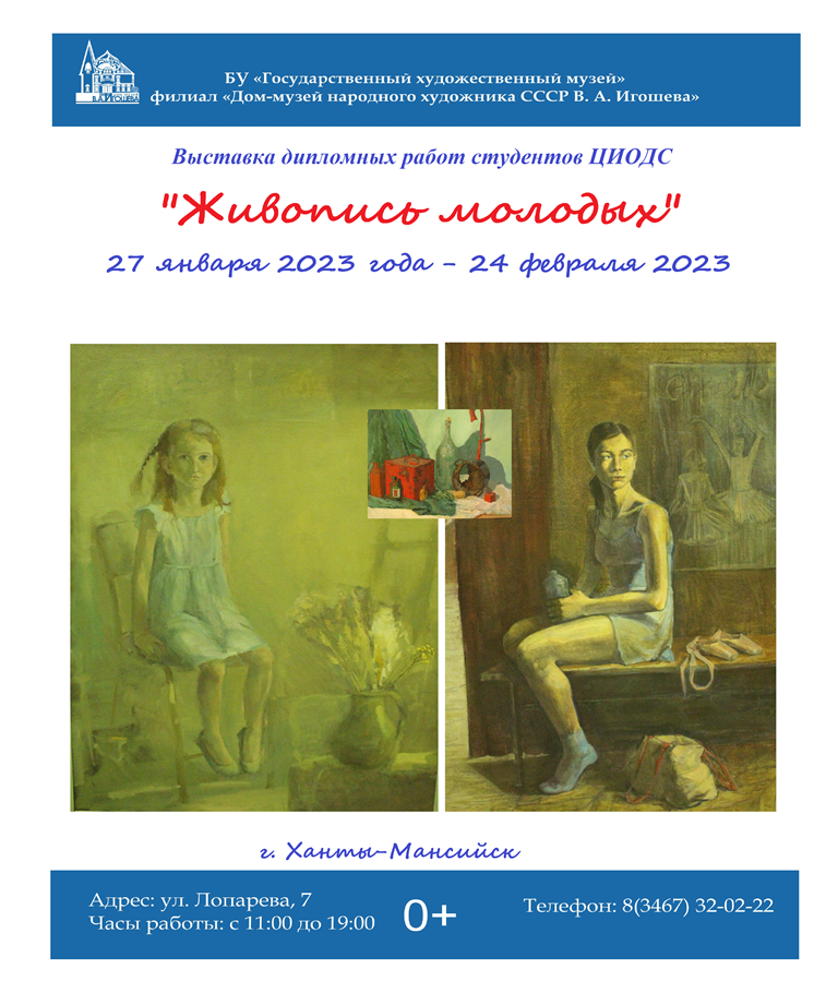 27 января 2023 года, в 16.00 в филиале Государственного художественного музея «Дом-музей народного художника СССР В.А. Игошева» будет представлен зрителю новый выставочный проект из цикла «Вернисаж в детской художественной галерее» - выставка «Живопись молодых».