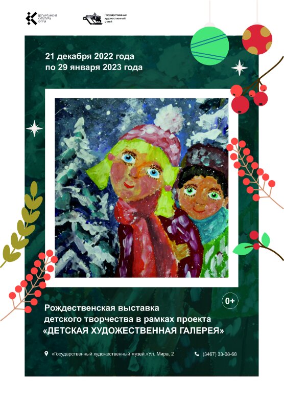 21 декабря, в 15.00, в зале Государственного художественного музея откроется Рождественская выставка детского творчества в рамках проекта «Детская художественная галерея» филиала «Дом-музей народного художника СССР В.А. Игошева».