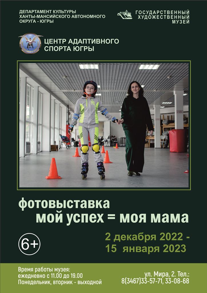 В Государственном художественном музее 2 декабря 2022 года начнет работать фотовыставка «Мой успех = моя мама» из цикла «Музей представляет». Фотовыставка является частью большого медиапроекта Центра адаптивного спорта Югры, который объединяет фото и видеоматериалы, газетные статьи и интернет-публикации о мамах будущих чемпионов.