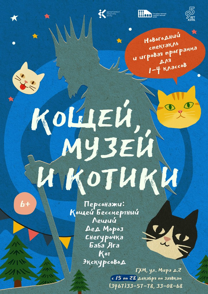 В этом году мы приготовили для вас нечто особенное: веселый новогодний спектакль «Кощей, музей и котики». Это не просто сказка, а настоящее интерактивное путешествие, где оживают любимые герои и даже музейные экспонаты!