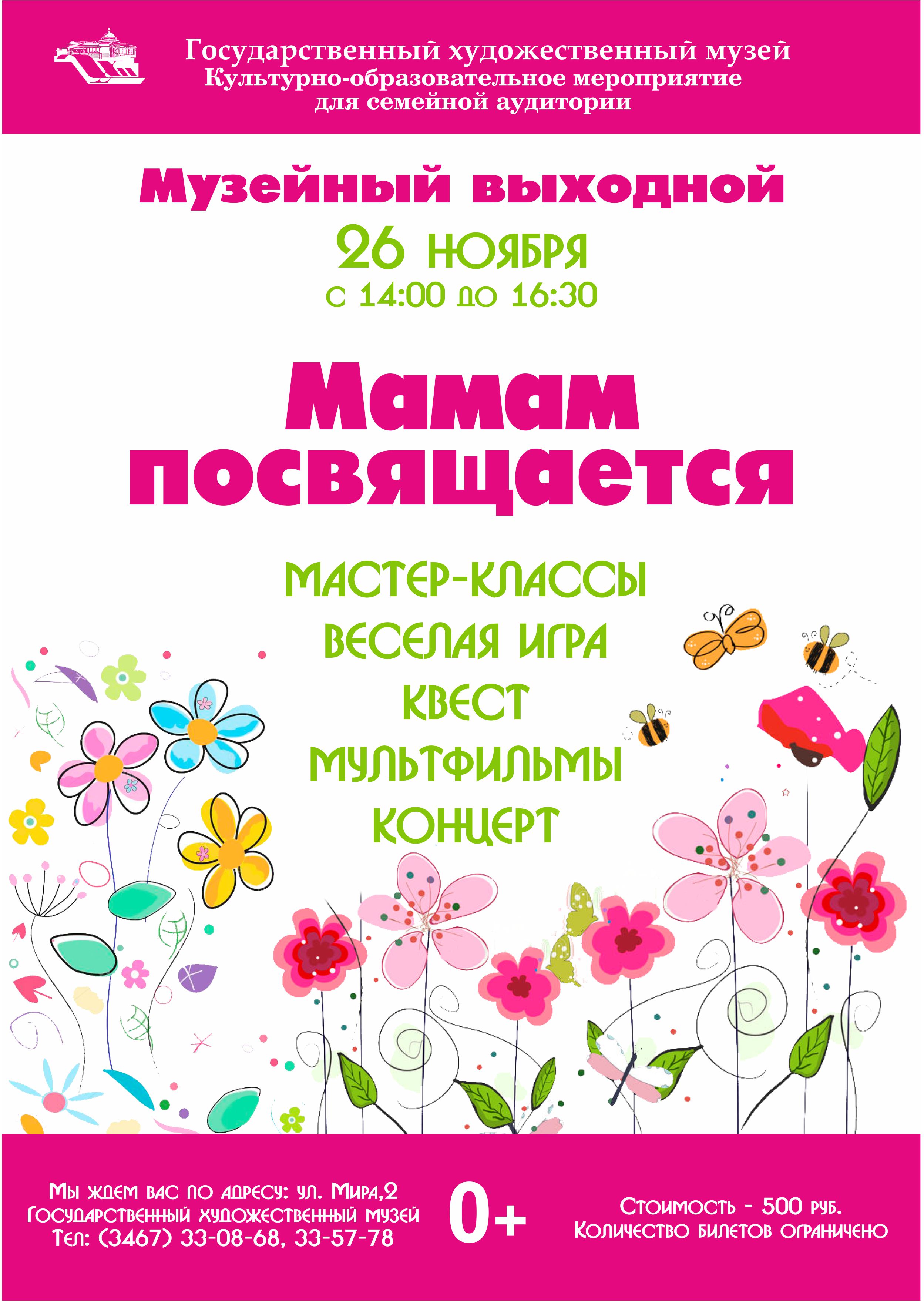 26 ноября, накануне Дня матери приходите всей семьей на «Музейный выходной»! Программа «Музейного выходного» посвящена нашей любви к мамам!