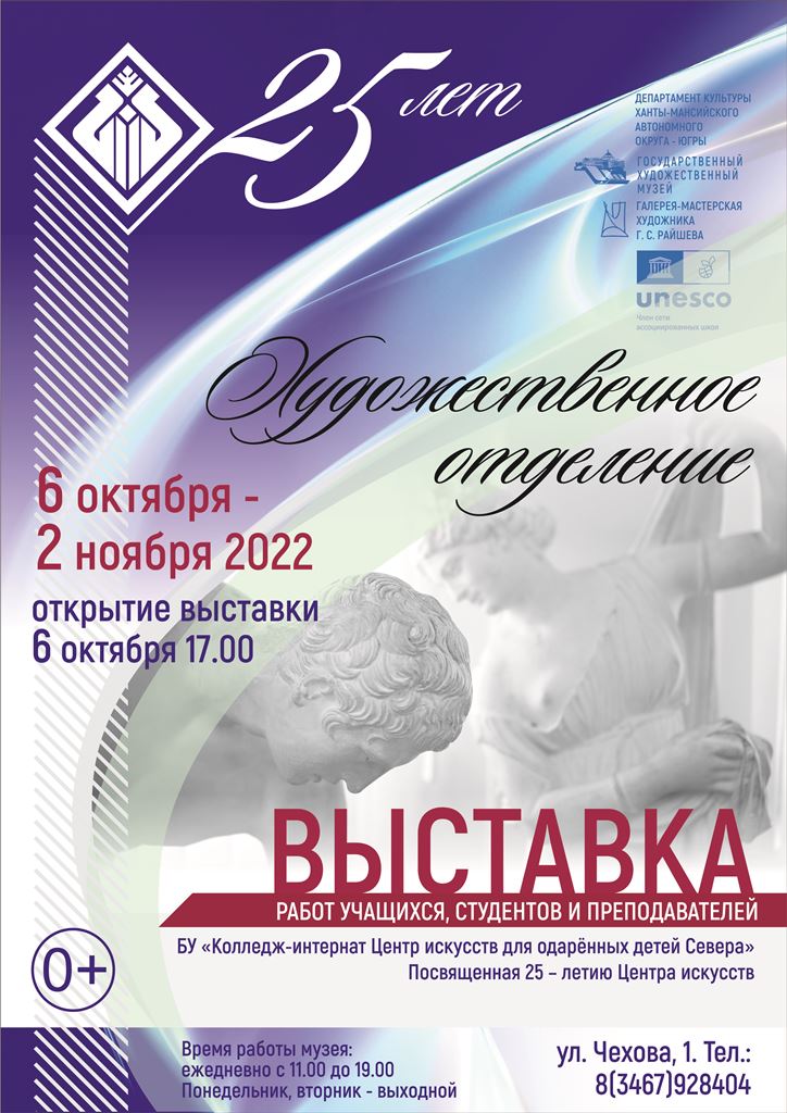 6 октября 2022 года в 17.00 в филиале Государственного художественного музея «Галерея-мастерская художника Г. С. Райшева» состоится открытие выставки бюджетного учреждения Ханты-Мансийского автономного округа – Югры «Колледж-интернат Центр искусств для одаренных детей Севера».