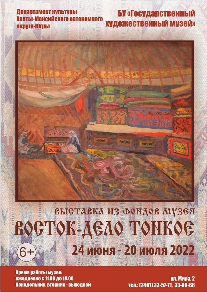 В рамках реализации проекта «Искусство - 100-летию СССР» 24 июня 2022 года начинает свою работу выставка из фондов Государственного художественного музея «Восток – дело тонкое».
