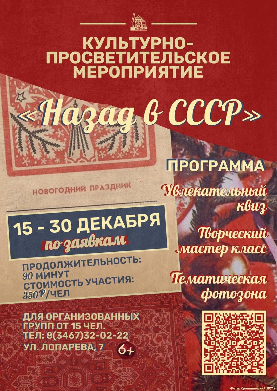 В преддверии самого волшебного праздника, когда воздух наполняется ожиданием чуда, филиал «Дом-музей народного художника СССР В.А. Игошева» приглашает всех жителей и гостей города совершить настоящее путешествие во времени. Забудьте о суете и предновогодней гонке – окунитесь в теплую, уютную и незабываемую атмосферу советских новогодних праздников!