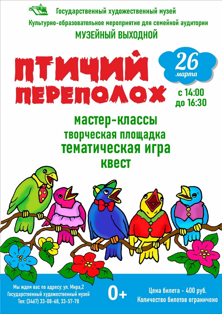 26 марта приглашаем на мероприятие для семейной аудитории «Птичий переполох». В программе – целая палитра творческих и познавательных площадок.