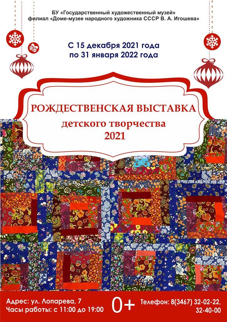 С 15 декабря 2021 года по 31 января 2022 года в филиале Государственного художественного музея «Дом-музей народного художника СССР В. А. Игошева» будет работать «Рождественская выставка детского творчества».