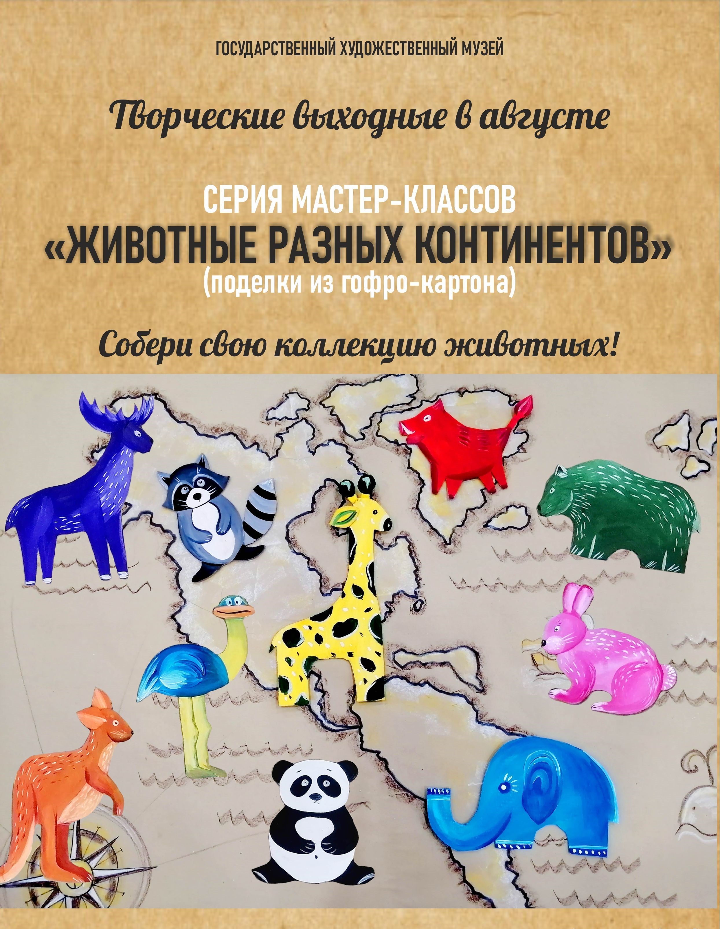 Каждые субботу и воскресенье августа приглашаем вас на мастер-классы, где вы смастерите из картона всевозможных животных!