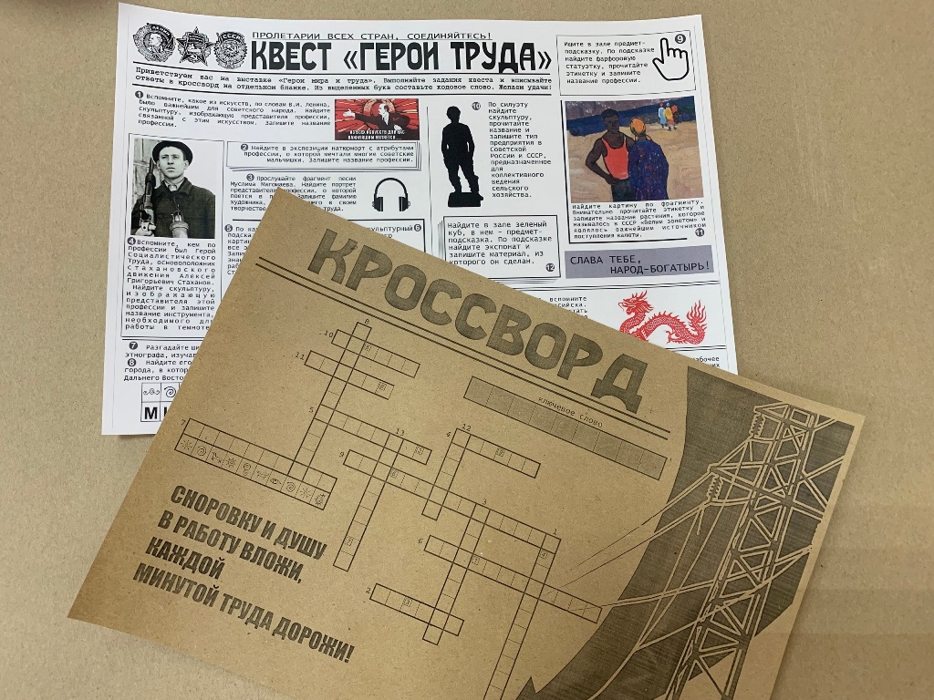 В небольшой компании друзей отправьтесь в путешествие по залам музея с квестом «Арт-эксперт». А квест по выставке «Герои мира и труда» лучше проходить вместе с родителями.