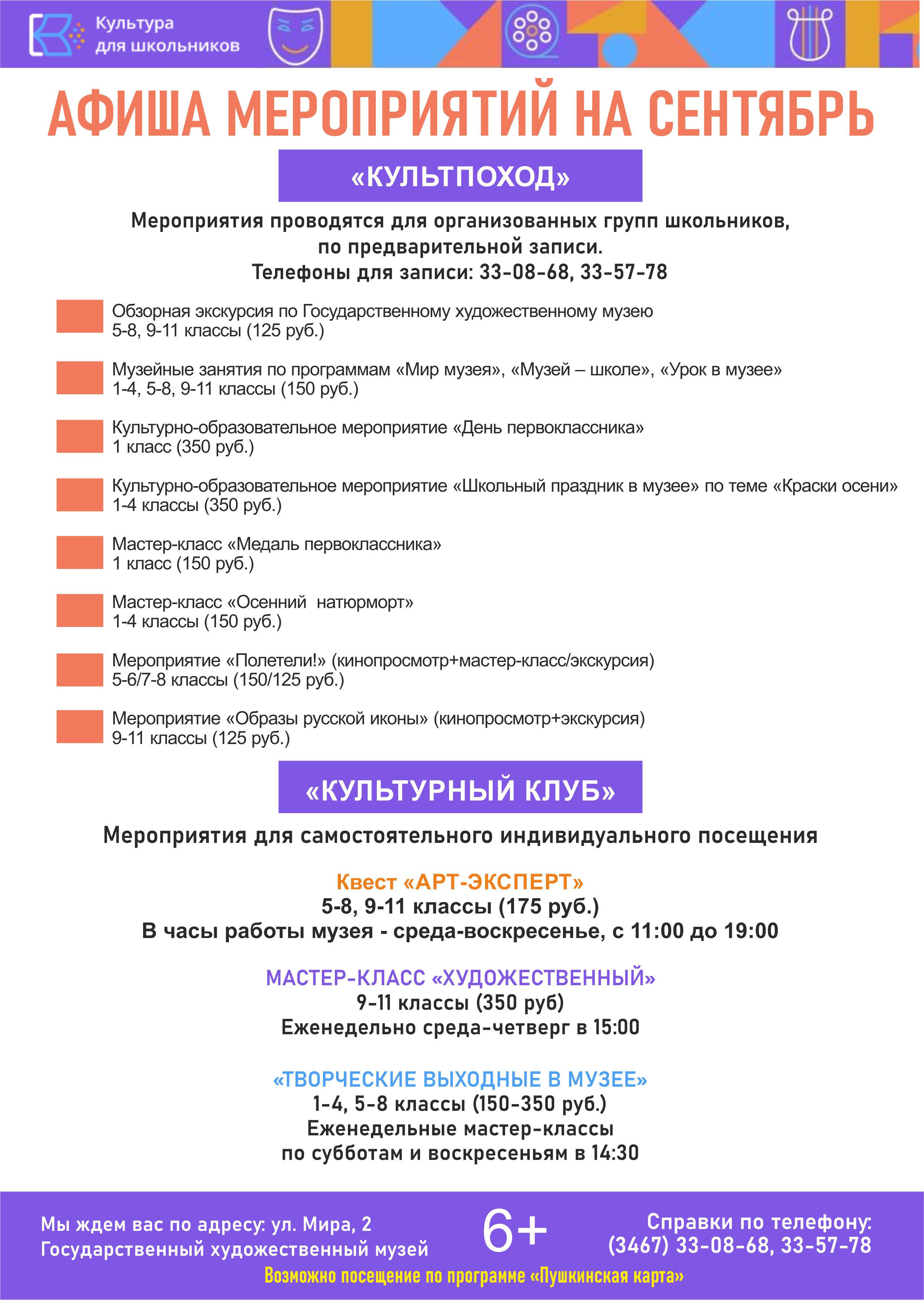 «Культура для школьников» в сентябре