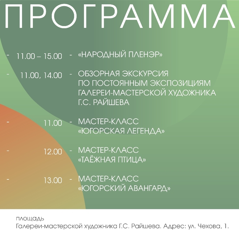 С 11.00 до 15.00 на примузейной площади Галереи-мастерской художника Г.С. Райшева развернется целая палитра творческих площадок с разнообразными мастер-классами для семейной аудитории.