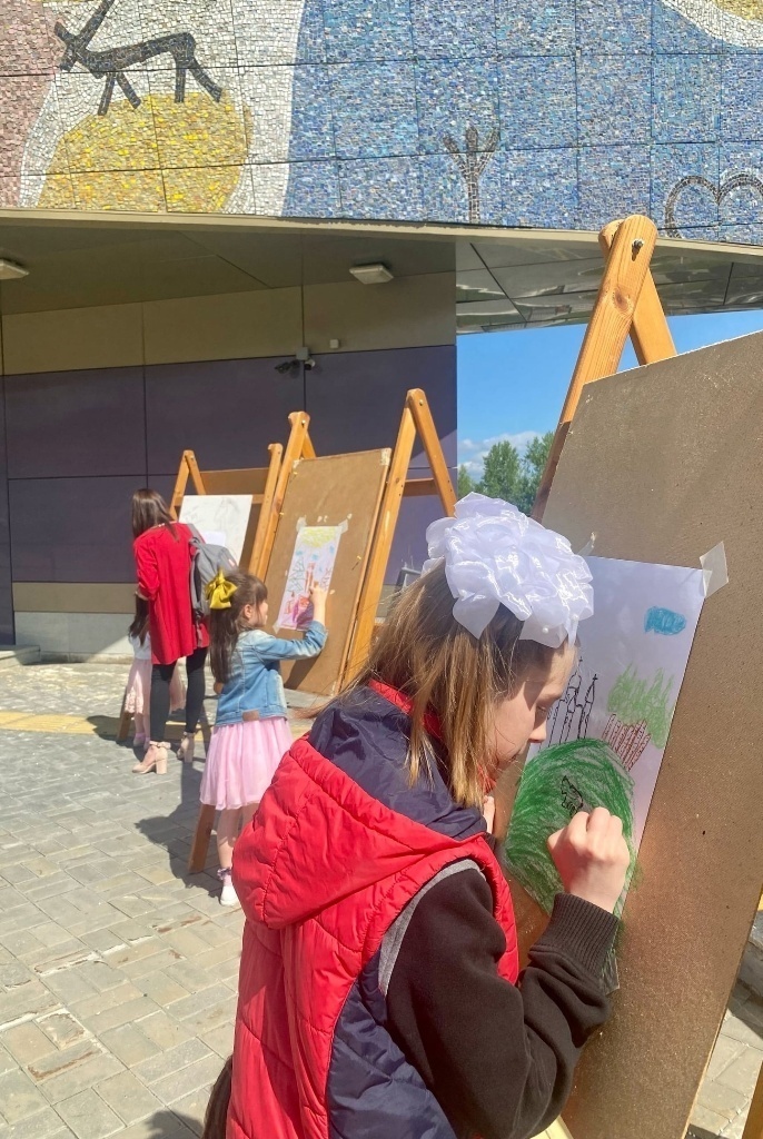 Гости смогут испытать себя в роли художников, создавая авторские композиции за мольбертами по мотивам монументального панно «Пространство Сибири» под руководством профессиональных художников.
