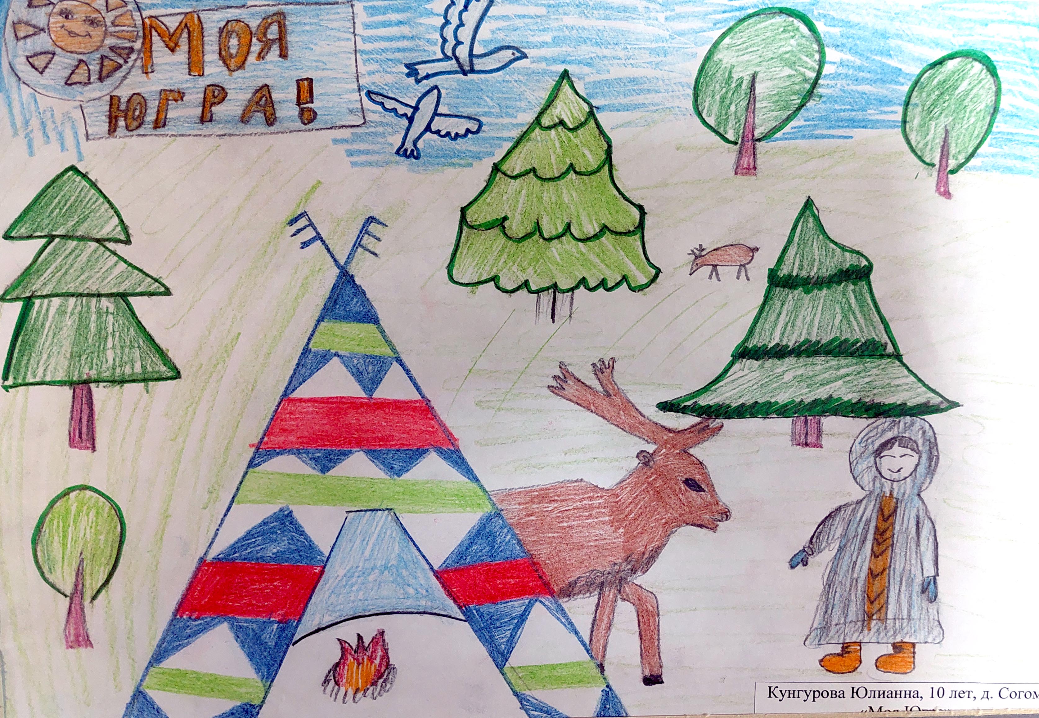 Рисунки прислали на конкурс дети и подростки в возрасте от 7 до 16 лет, проживающие в Ханты-Мансийском районе. Основные темы: «Моя Югра – моя деревня», «Моя семья» и «СеверРечФлот глазами детей». На выставке представлены лучшие работы.