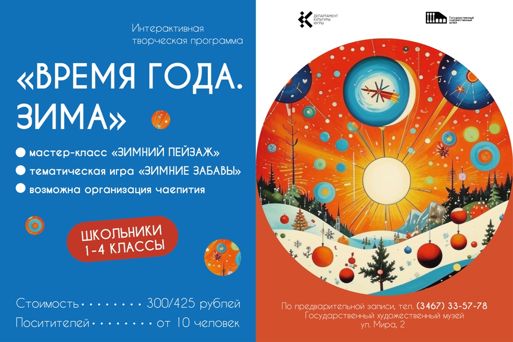 В программе мероприятия - мастер-класс «Зимний пейзаж» и тематическая игра «Зимние забавы». Возможна организация чаепития.