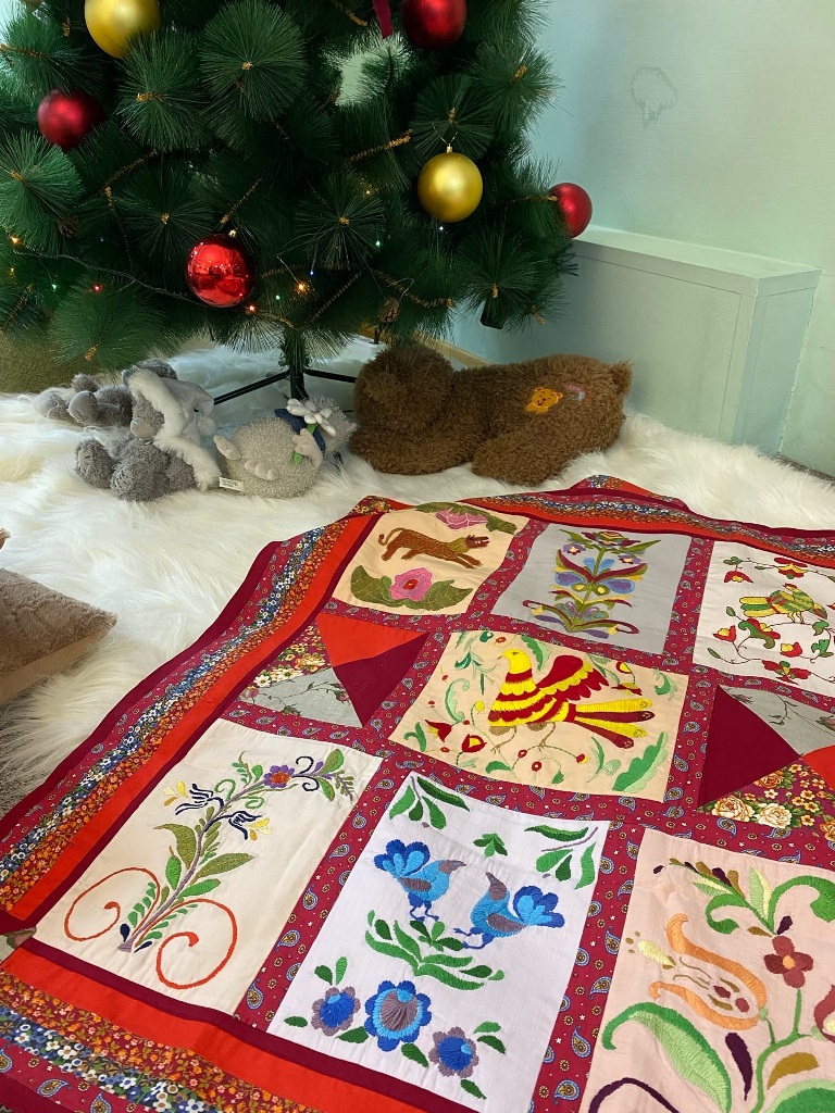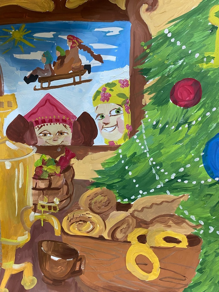 На первом этаже музея в Детской художественной галерее создано необычное праздничное выставочное пространство. Рядом с украшенной новогодней ёлкой на выставке представлены работы детей города Ханты-Мансийска, выполненные в различных техниках декоративно-прикладного искусства. Показано разнообразие видов народного искусства: лоскутное шитьё, резьба по дереву, роспись по дереву и бересте, вышивка, плетение ковриков. Также на выставке представлены детские рисунки на тему празднования Рождества Христова и новогоднего праздника. В экспозицию входит видеоролик, который знакомит с русскими народными играми «Коляда», «Ручеёк», с народными песнями.