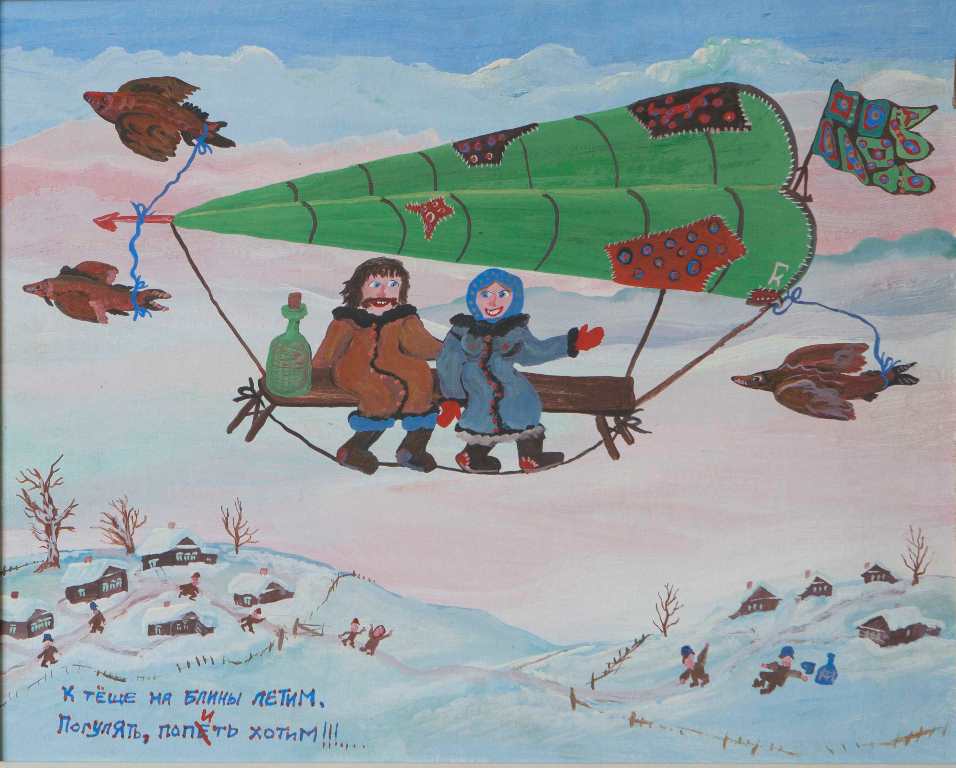 Наивное искусство привлекает исследователей и широкую публику, и интерес к нему постоянно растет. Это термин, которым обозначают довольно широкий круг произведений, созданных вне профессиональных школ и обладающих определенными художественными особенностями. На выставке представлены работы нескольких наивных художников второй половины XX века, в том числе знаменитой Любови Майковой (1899-1998), «Бабы Любы», которая впервые взяла в руки карандаш в 79 лет. Творчество Майковой поразило специалистов и широкую публику небывалой свободой в использовании цвета. В экспозицию вошла также живопись Анатолия Германа (1928-2002) и Григория Кусочкина (1947-2005).
