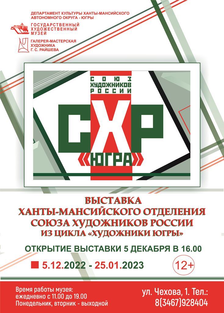 5 декабря 2022 года в филиале Государственного художественного музея «Галерея-мастерская художника Г. С. Райшева» начнет свою работу выставка регионального отделения ВТОО «Союз художников России» по ХМАО - Югре, которая станет подарком югорчанам ко Дню образования автономного округа.