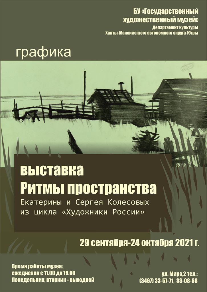 В Государственном художественном музее с 29 сентября 2021 года начинает свою работу выставка «Ритмы пространства Екатерины и Сергея Колесовых» из цикла «Художники России». Выставка представляет графические произведения лауреатов I Межрегионального молодежного пленэра «АРТерия» (2012) из художественного собрания Государственного художественного музея.