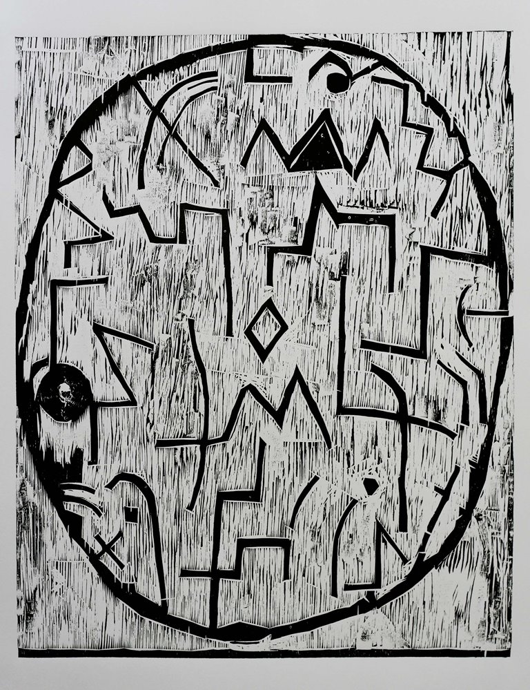 В экспозиции представлена графика периода с 1990-х по 2000-е годы. В основном это работы большого формата, выполненные в различных графических техниках. Отдельное место на выставке занимает серия «Бубны». Художник говорит: «Я много путешествую. И во многих культурах бубен – важный атрибут, как музыкальный инструмент, как магический символ. Поэтому и стал рисовать разные варианты, чтобы разобраться, что это такое».