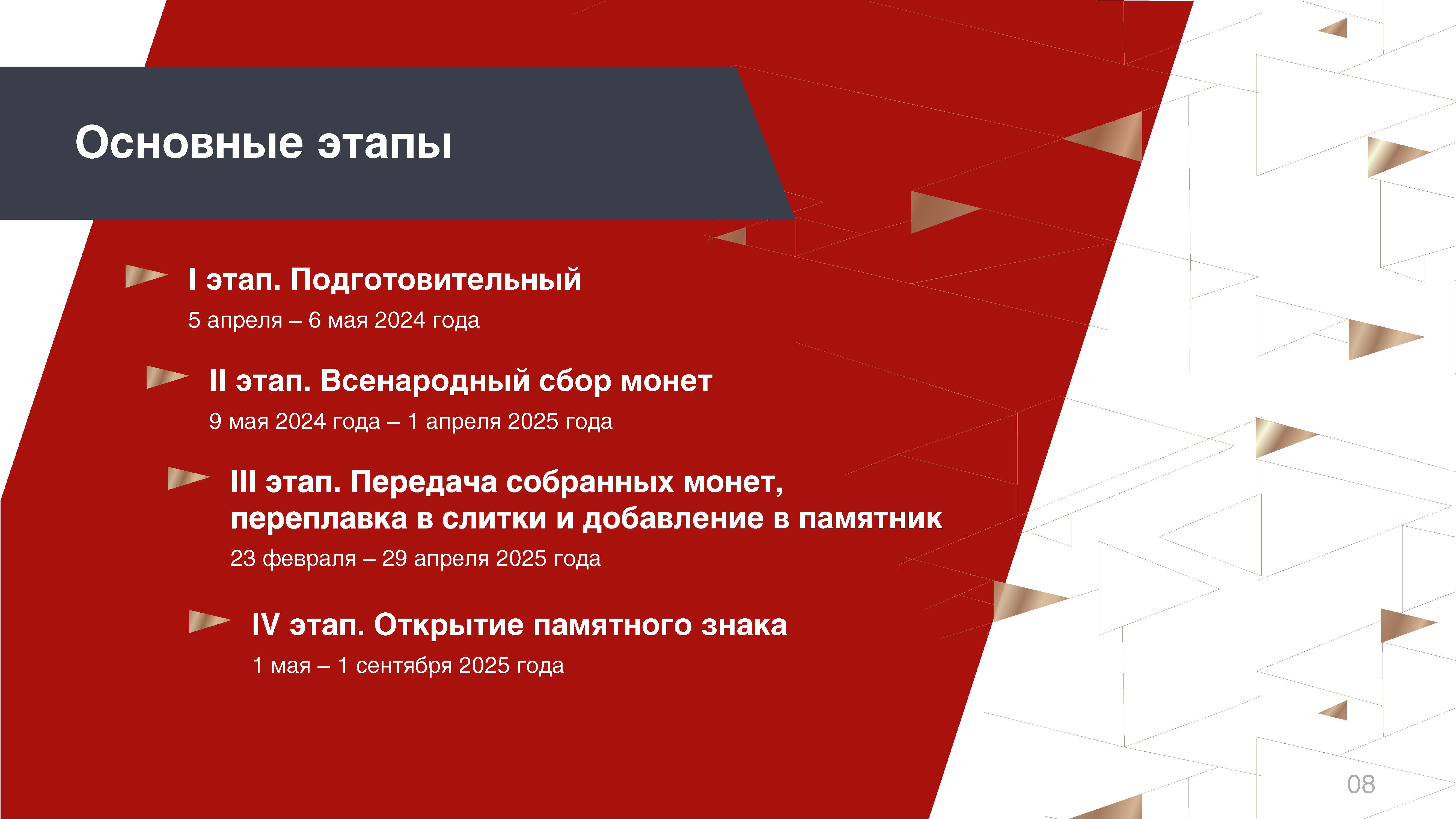 Организаторы планируют привлечь свыше пяти миллионов семей из России к участию в выплавке знака. Который появится уже в Москве в Парке Победы в 2025 году. В преддверии 80-летия Великой Победы на Поклонной горе.
