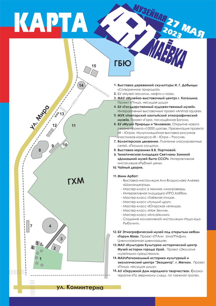 - выставка-инсталляция в ретро-автомобиле «Шамандеград» современного югорского художника Али-Владислава Алеева представляет композиции на тему северной природы. В нем же Владислав проводит мастер-класс в технике линогравюры.
