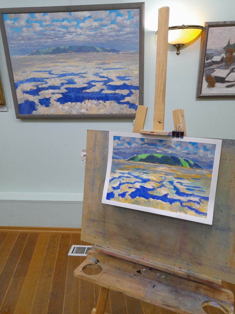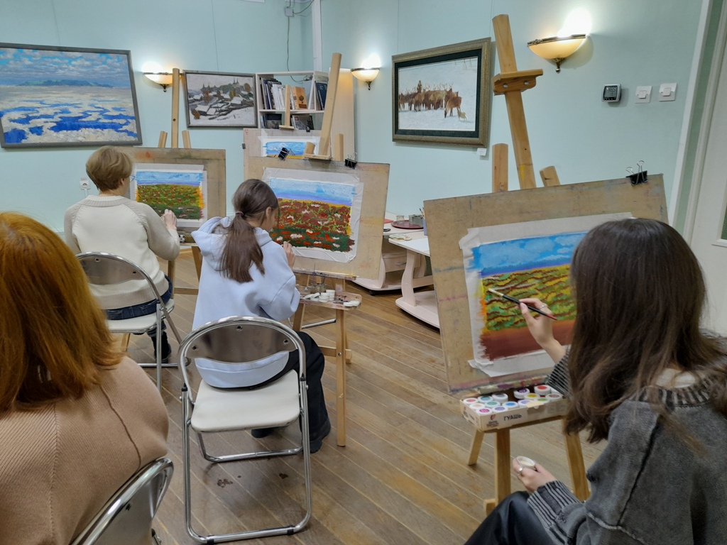 Примечательно, что для первых мастер-классов были избраны работы югорских художников. Так, в субботу, за основу для копирования был выбран пейзаж А.Г. Визеля «Осенняя тундра», а в воскресенье – картина С. Н. Устюжанина «Жемчужина Сибири».