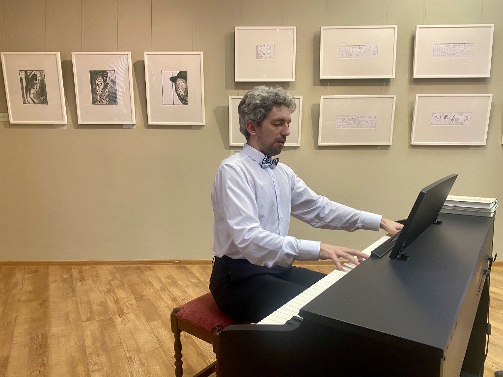 На протяжении всего вечера зрителей радовали фортепьянные композиции в исполнении блистательного артиста Концертного оркестра Югры Алексея Коржова. Для гостей прозвучал романс Михаила Глинки «Ах ты, ночь ли, ноченька», а также русская народная песня «За морем синица жила». Это любимая песня А.С. Пушкина, которую поэт слушал вечерами с великим удовольствием.