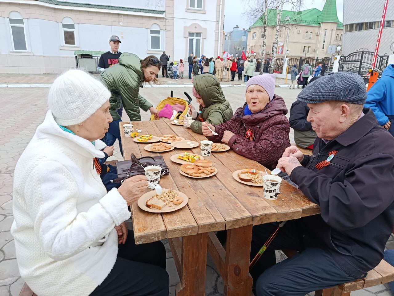 Наши партнёры - первичное отделение №30 партии «Единая Россия» накормили всех вкуснейшей солдатской кашей.