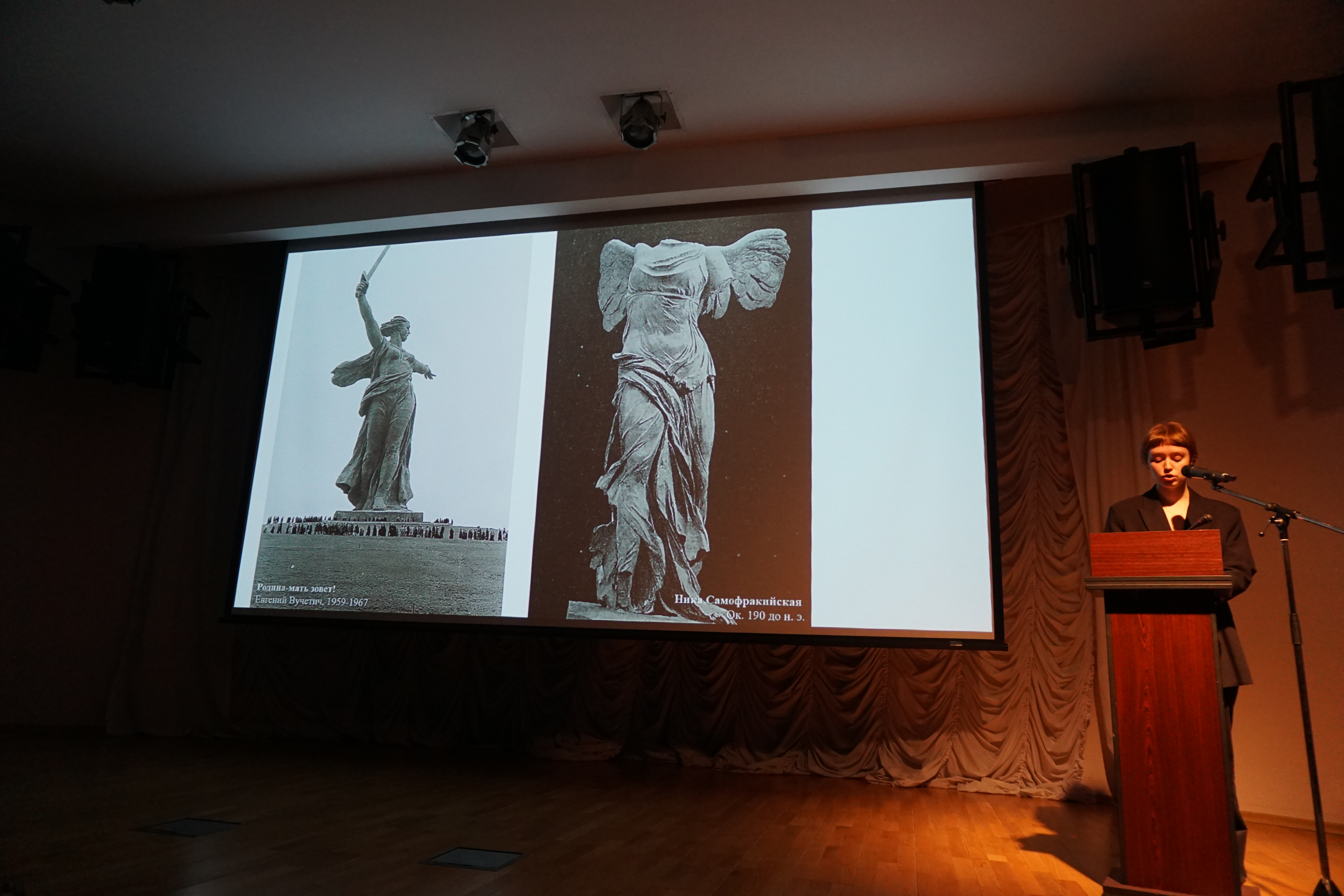 В своих докладах молодые люди поднимали темы творческого наследия художников-фронтовиков, иллюстраций к литературным произведениям о Великой Отечественной войне и её месте в изобразительном искусстве.