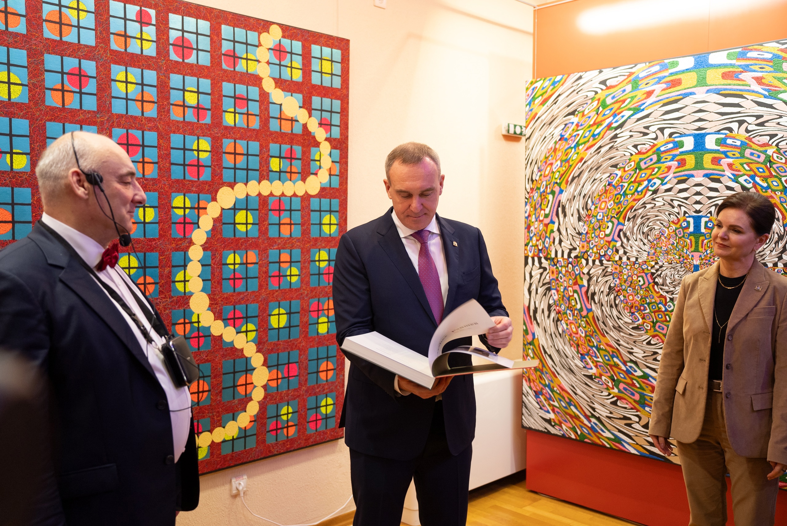 На открытии новой выставки гостей приветствовал глава региона Руслан Кухарук: «Сегодня мы вспоминаем и говорим слова благодарности тем людям, которые создавали этот музей. Он архитектурно прекрасен и располагается в центральной части нашего города, но самое главное - это то наследие, которое бережно хранят сотрудники, работающие в музее сейчас. И не просто хранят, а показывают все то, что было создано великими людьми в мировой художественной культуре. Приятно, что музей постоянно развивается, он отвечает на запрос текущего времени. Мы видим и экспозиции, которые опережают время. Я встречался в музее с теми, кто является двигателем креативных индустрий и создает интересный, уникальный творческий продукт, который, являясь настоящим искусством, влияет и на развитие экономики региона и страны. Нам повезло, что в соседнем с нами регионе есть художник – родоначальник нового направления. То, что мы видим, то, что нас окружает сейчас в залах музея, конечно, очень уникальные и завораживающие произведения. Образы в инсталляциях связывают прошлое, настоящее и будущее. С этой выставки начинается 15 сезон музея, и именно эта выставка продолжает нашу программу, которую мы запустили совестно с Ямало-Ненецким автономным округом и Тюменской областью в рамках культурного обмена. Я всех поздравляю с началом нового сезона».