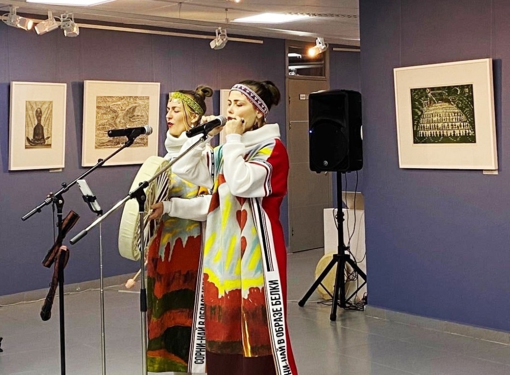 В унисон произведениям Маэстро Райшева в пространстве выставки звучала музыка. Вокально-инструментальные современные этнические композиции в исполнении солисток Концертного духового оркестра Югры – Ангелины Безруковой и Екатерины Бурцевой не оставили равнодушными наших гостей.