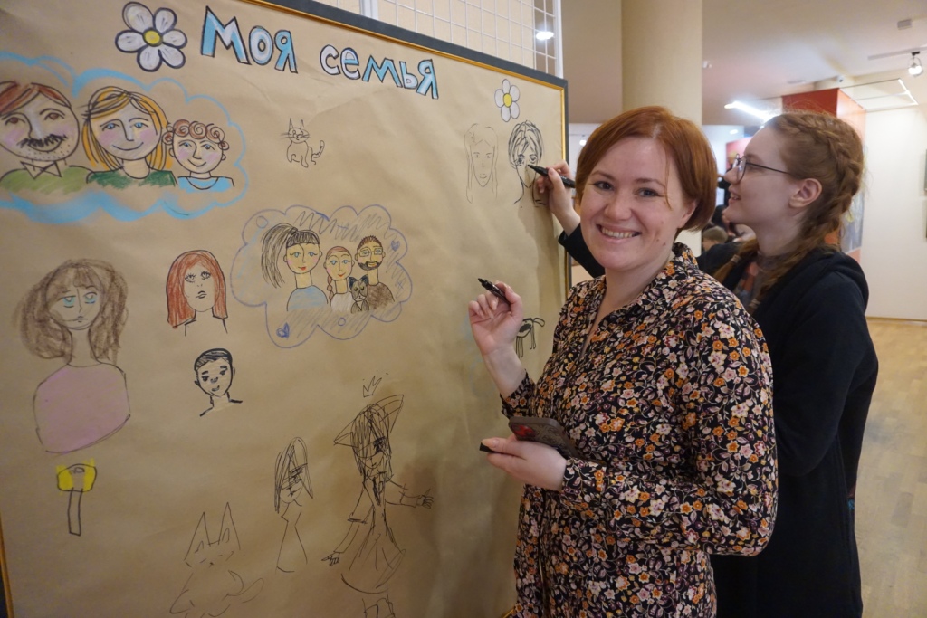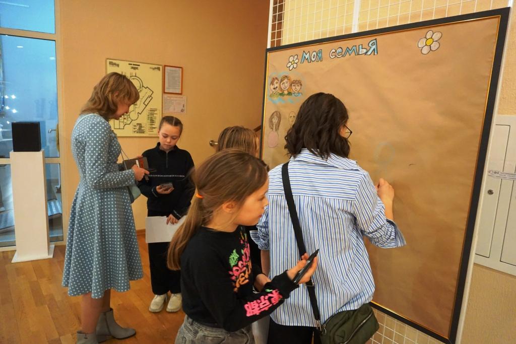 На мастер-классе «Моя семья» создавали уникальную композицию в технике коллажа, используя надписи, тексты, картинки или фотографии членов своей семьи. На занятии «Пока все дома» наполняли дом жизнью: изображали в окнах его жителей и предметы их семейного быта. Создать портрет домашнего питомца предлагалось на одноимённом мастер-классе.