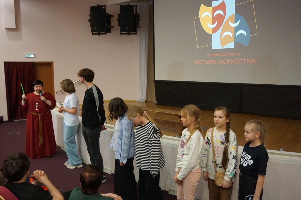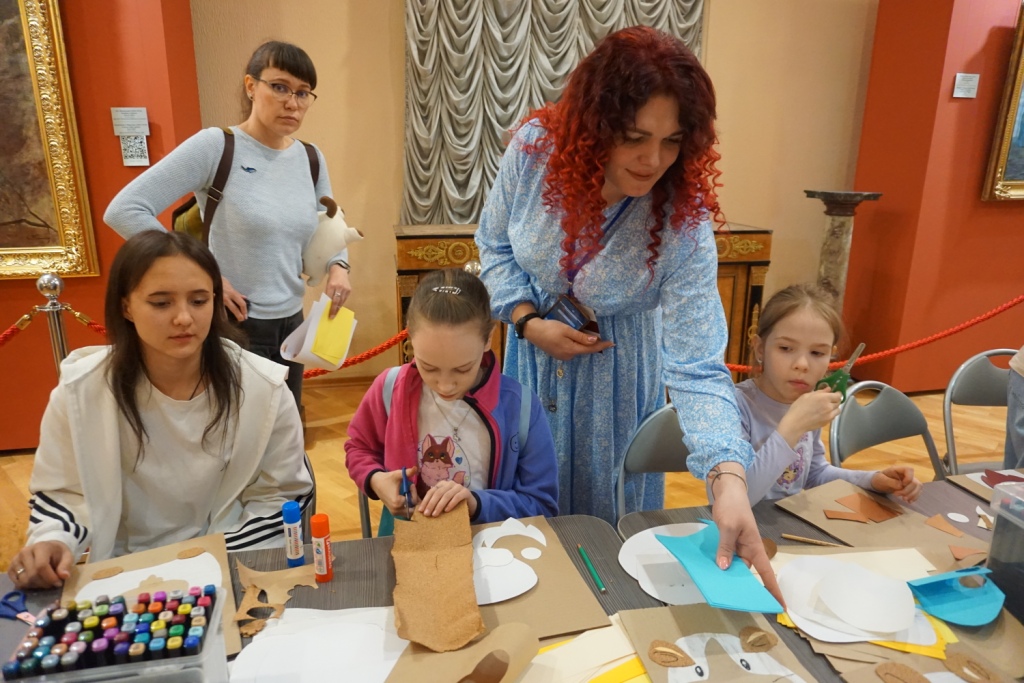 Труппа музейного театра «Четыре искусства» устроила для зрителей творческую лабораторию «Сказки о картинах», включающую спектакль и интерактивную часть. Любой смог почувствовать себя артистом.