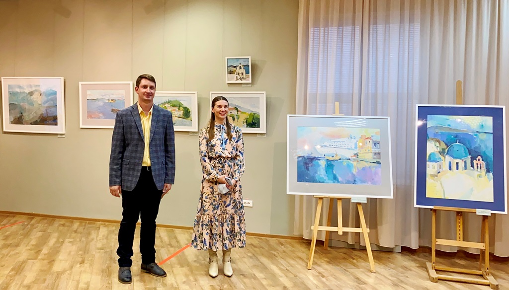 Для гостей выставки Дмитрий и Ольга провели авторскую экскурсию по экспозиции, в которую вошли 28 живописных произведений, созданных под впечатлением пленэров и путешествий по Оби, Приполярному Уралу, Черногории, Греции, Киргизии.
