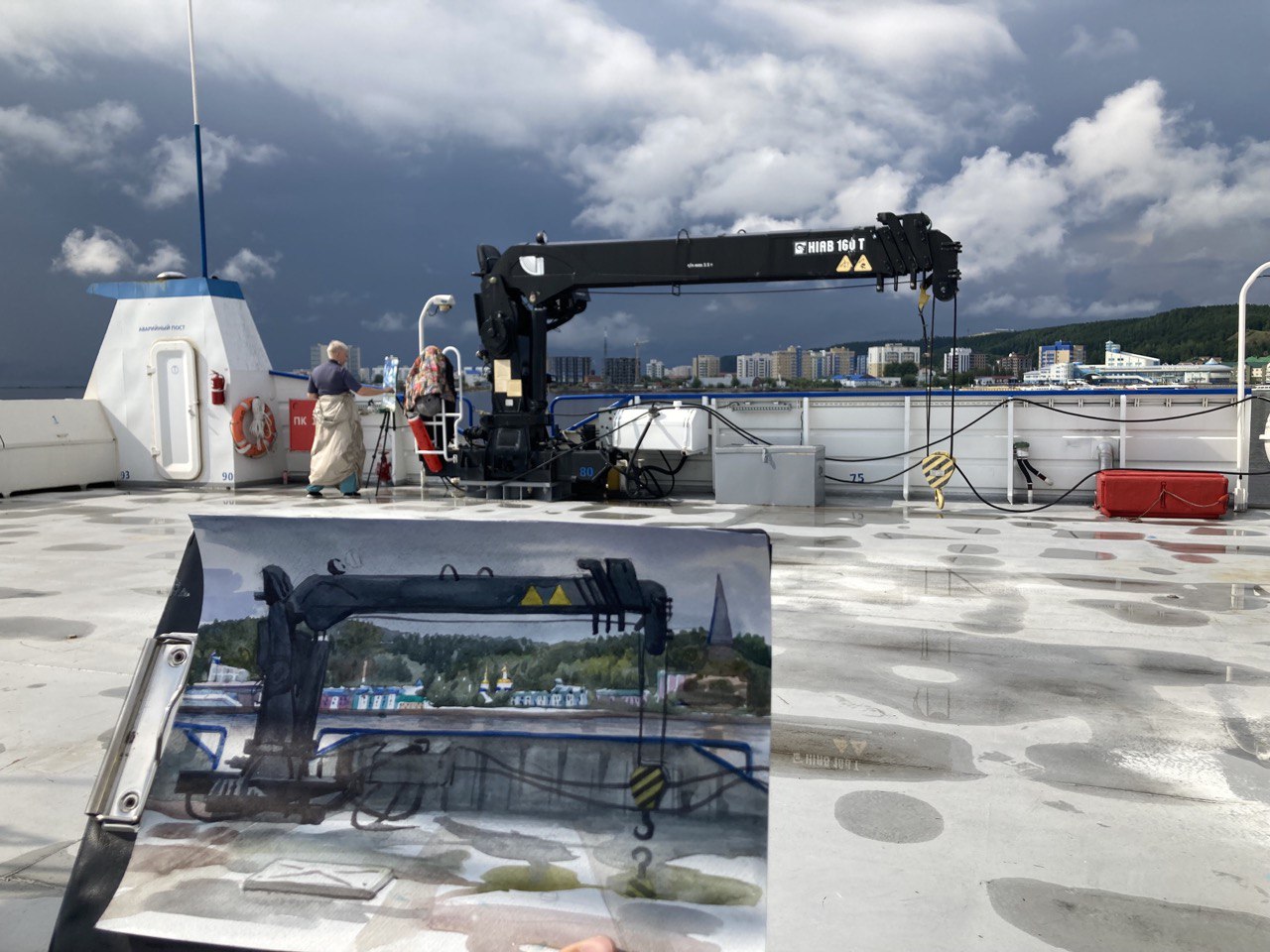 В порту гостей встречал генеральный директор АО «Северречфлот» Айрат Чумарин. Почти сразу после визита Айрат Раисович предложил художникам стать участниками творческого рейса на борту теплохода «Ямал». В расписание мероприятий внесли дополнения.