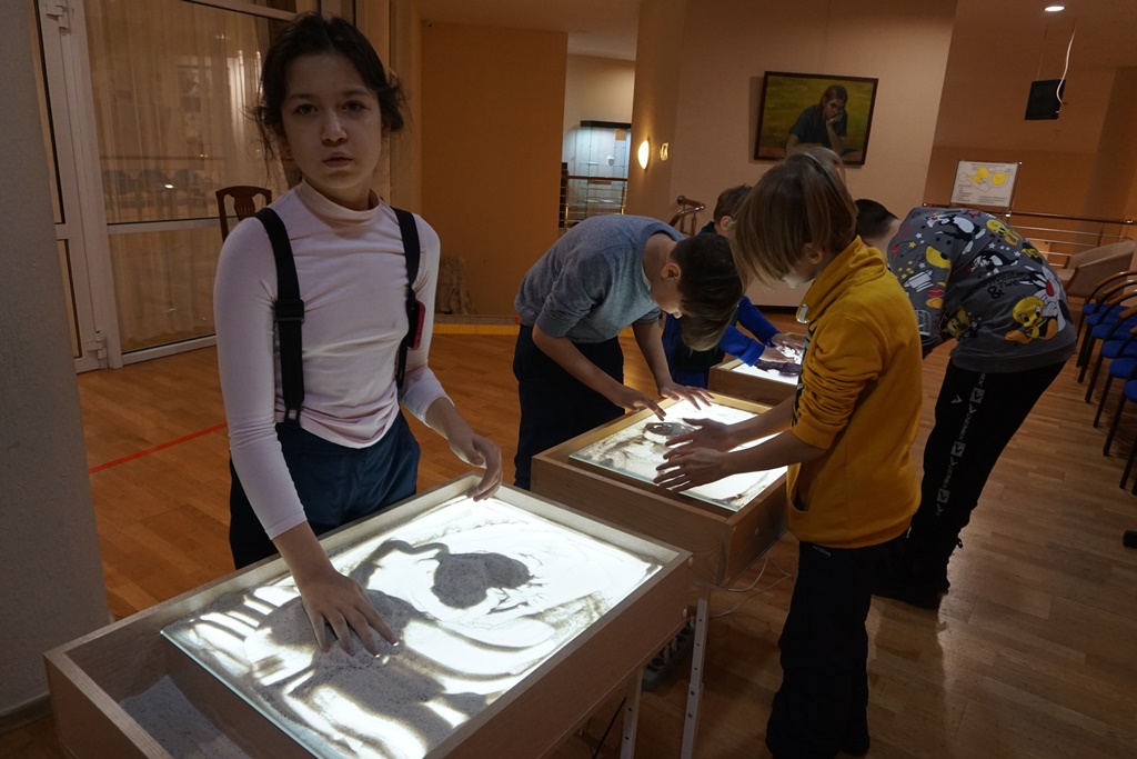 Просмотр мультфильмов, рисование песком и игровой уголок дополнили программу «Музейного выходного».