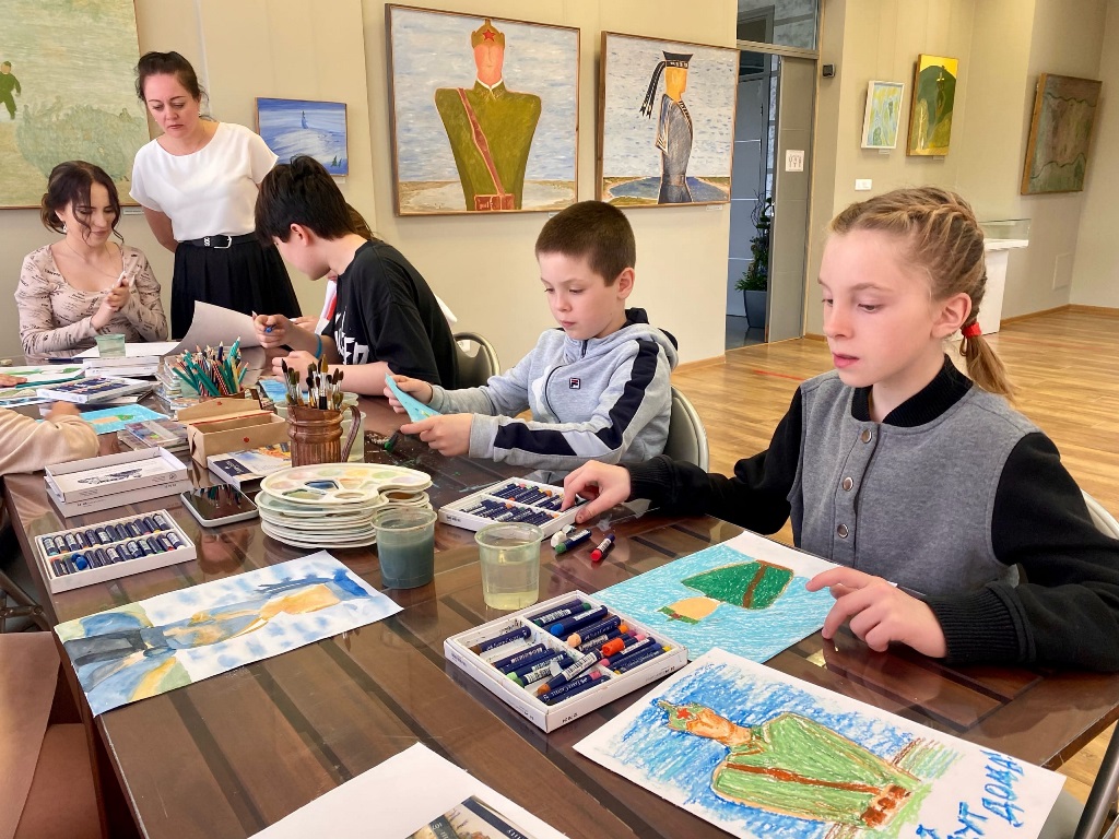 На выставке «Геннадий Райшев: Война издалека» участники Музейной ночи могли не только познакомиться с запоминающимися картинами художника, связанными с памятью детства о войне, но и создать открытки для солдат, которые будут отправлены тем, кто сейчас защищает нашу Родину.