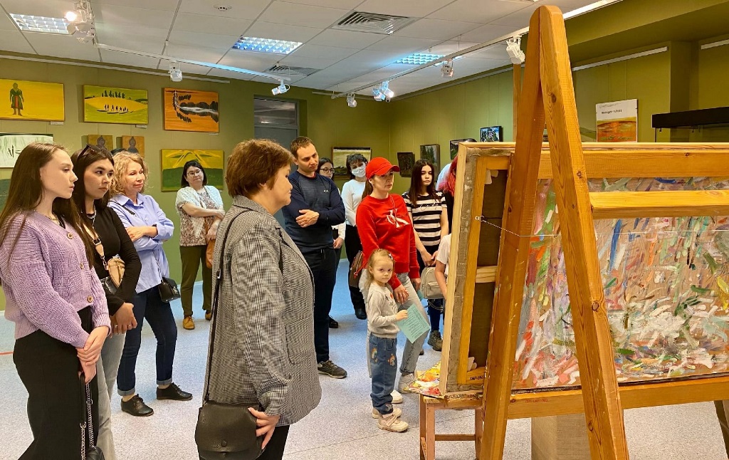 Экскурсия сургутской художницы Марины Шишовой по собственной выставке «Без комментариев» – с возможностью прикоснуться к рельефной поверхности холстов, раскрыть секреты техники многослойной живописи и живым общением с автором – стали настоящим подарком для участников мероприятия.