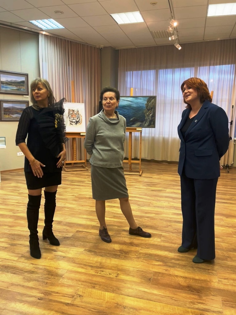 Ирина Миклушевская – Почетный член Российской академии художеств, член Ассоциации искусствоведов и член Творческого союза художников России, участница многочисленных выставок, пленэров и арт-фестивалей в России, а также в Республике Корея, Китае, Японии, представила гостям вернисажа свои произведения.