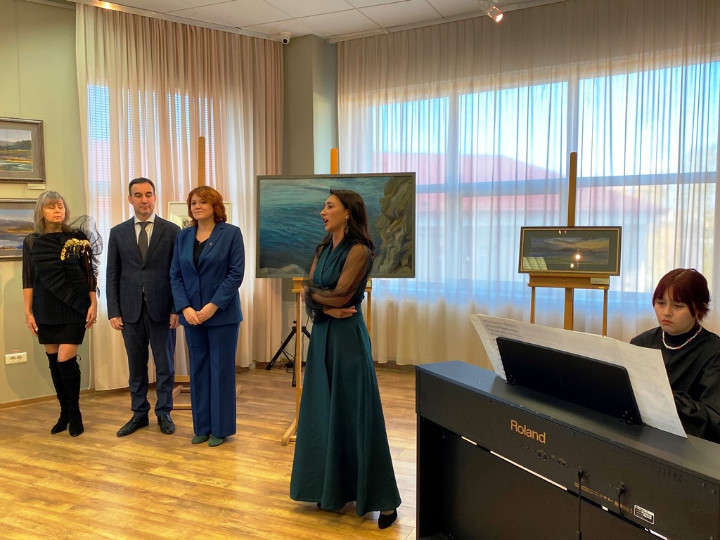 В унисон произведениям художницы в Галерее-мастерской звучала музыка. Преподаватели музыкального отделения Центра искусств для одаренных детей Севера Лариса Мацур и Милена Газизуллина исполнили лирическую композицию «Parlami d‘amore», а студентка Мария Есиневич виртуозно сыграла на фортепиано «Ноктюрн» О. Респиги.