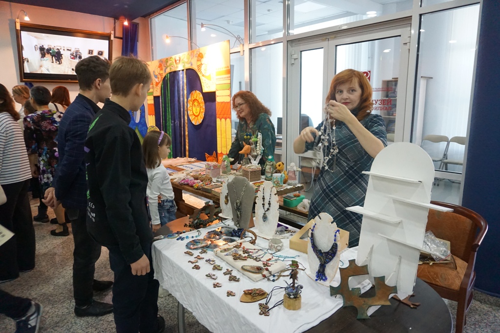 В холле музея гостей фестиваля встречал Петрушка из Театра кукол и делал всем прививку – прививку весёлого настроения. Добавляла праздничного настроя выставка хэндмэйд-мастериц Марины Проняевой и Евгении Наточий.